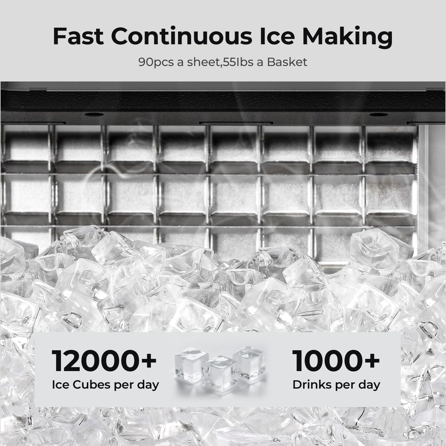 Upgraded Crescent Ice Machine: characterized by its distinctive design, not only enhances aesthetic appeal but also significantly improves the cooling efficiency of ice cubes. This ice machine ensures that beverages achieve the desired low temperature in a timely manner