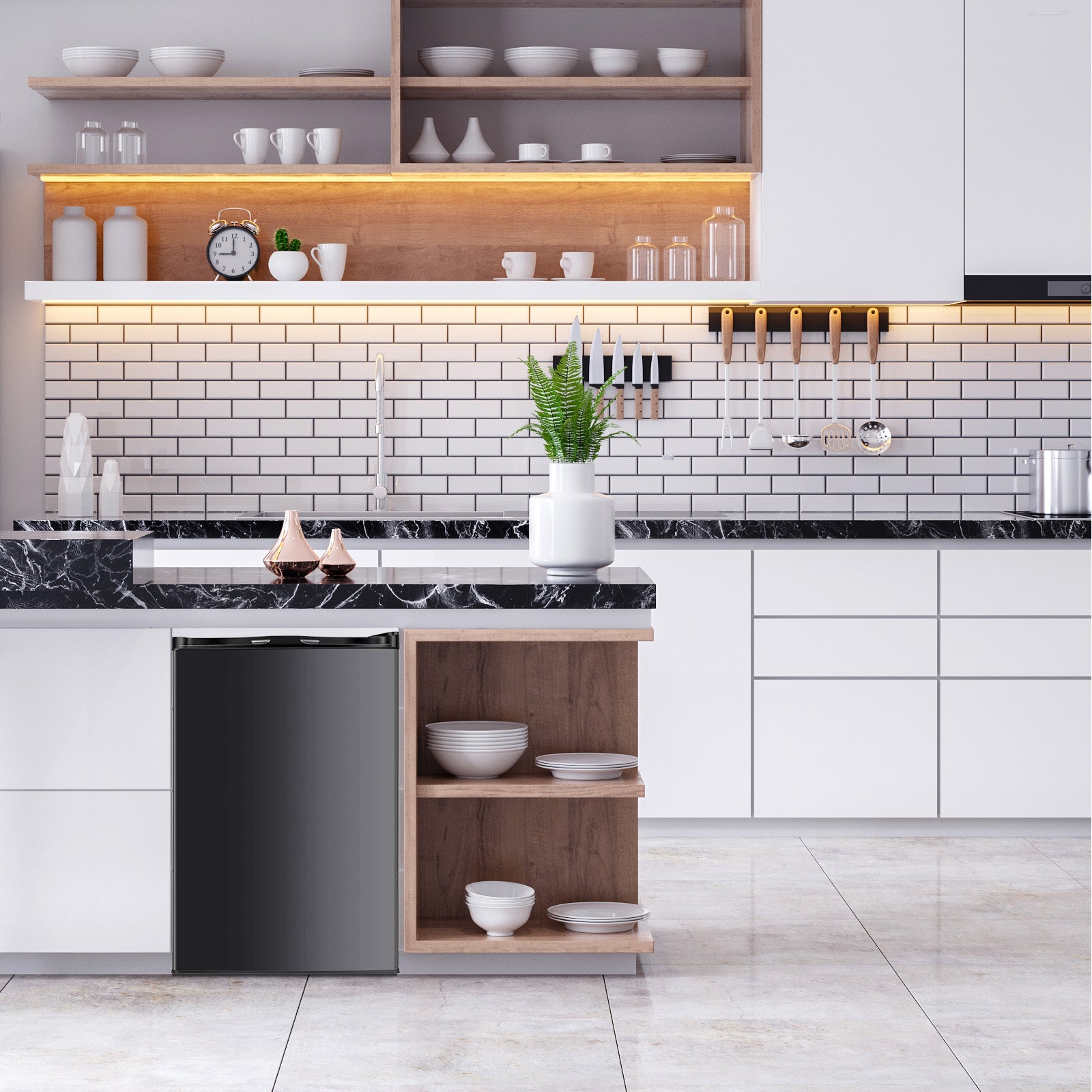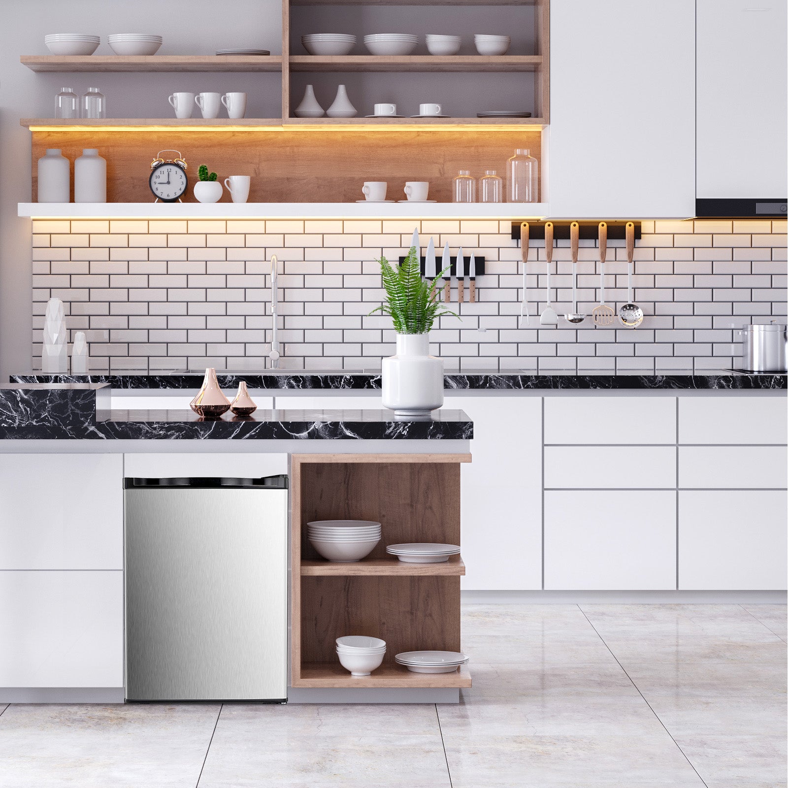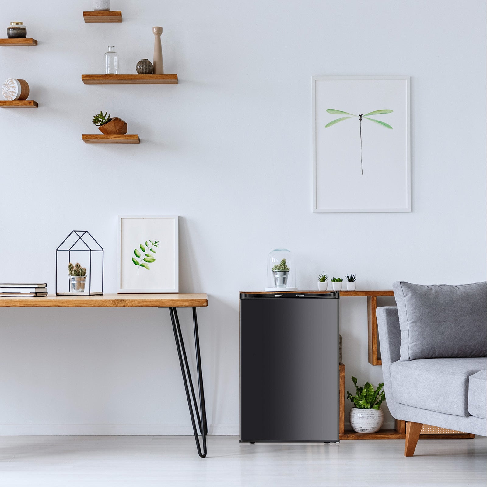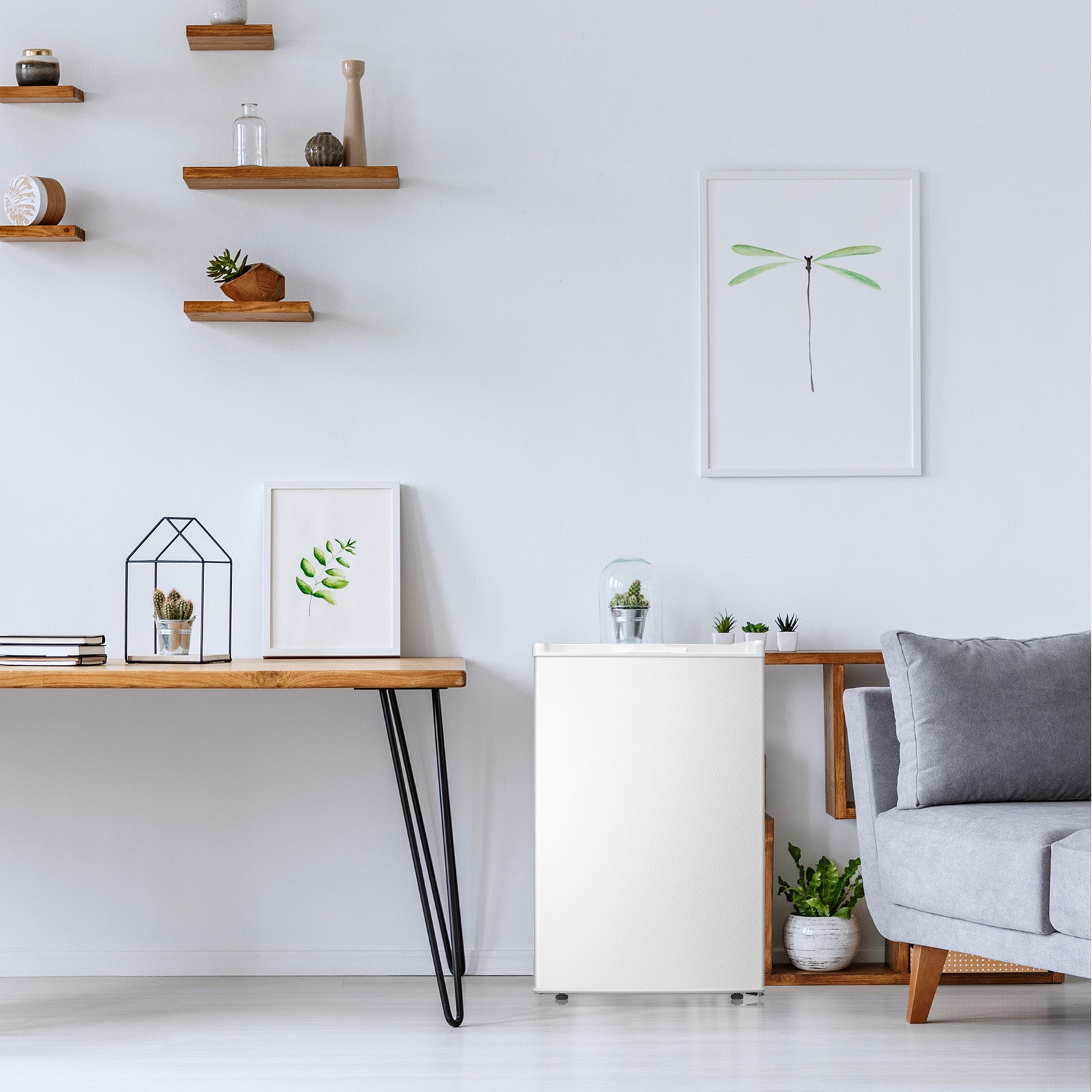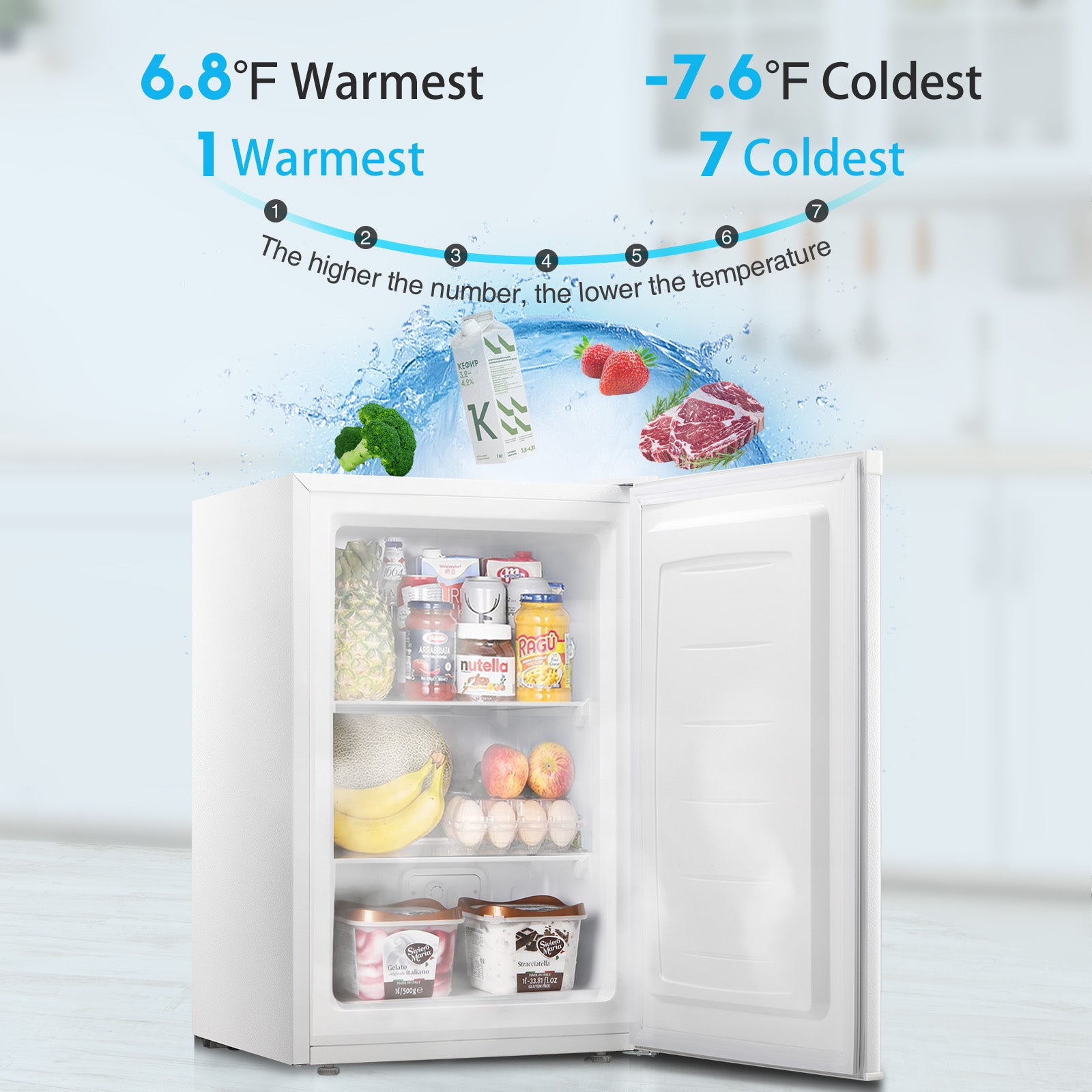 【 Multiple Application】This upright freezer can be mounted in cabinet or placed besides sofa, less space occupying, perfect for home, office etc. Ideal for breast milk, meat, aquatic products, cold drinks, quick-freezing and other purposes.